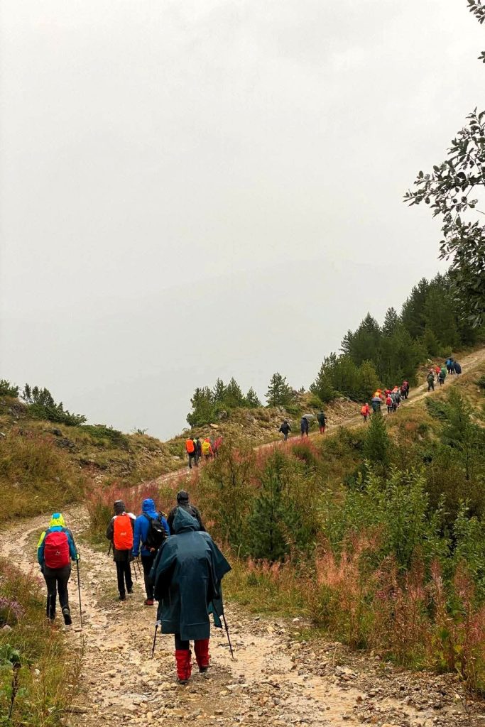 Grupa A krenula je planinarskom stazom od Brezojevice ka vrhu Bandera (Krivi smet) na 2211 mnv. Trebalo je prijeći 7,9 km, savladati oko 1300 m uspona za oko 5 i pol sati hoda. Kontinuirani zahtijevan uspon kroz bukovu šumu zaslađivali smo kupinama, malinama i borovnicama, osvježili se hladnom vodom na Velikoj Gropi.